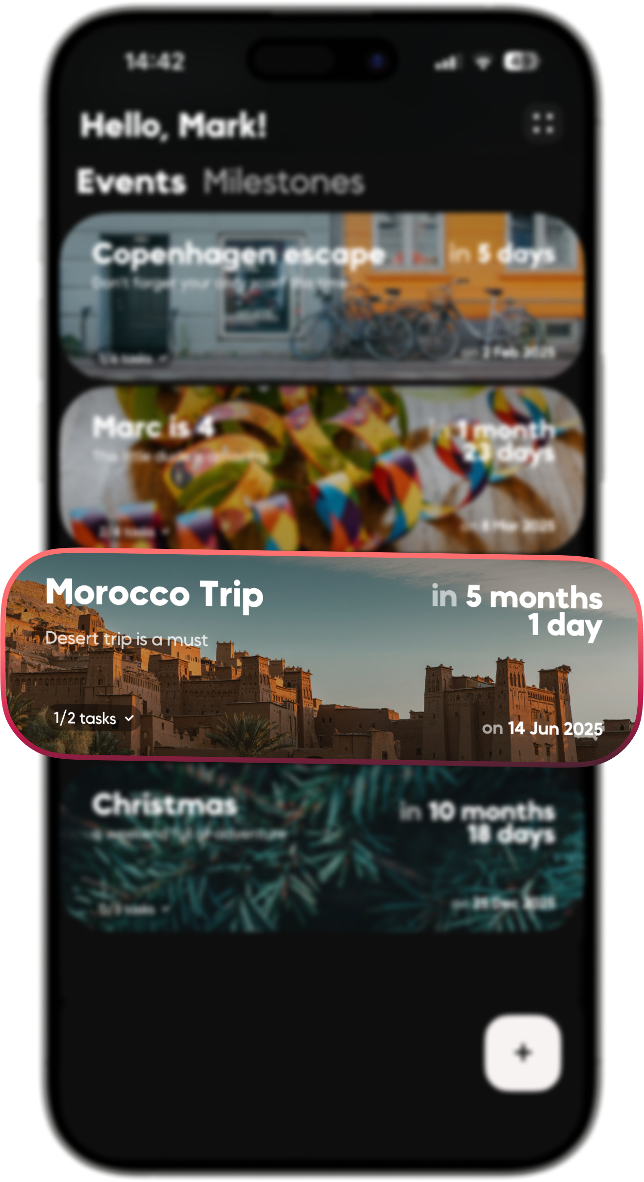 Add your special moments and watch the days tick down. Built-in task lists keep you ready so you can focus on the fun.